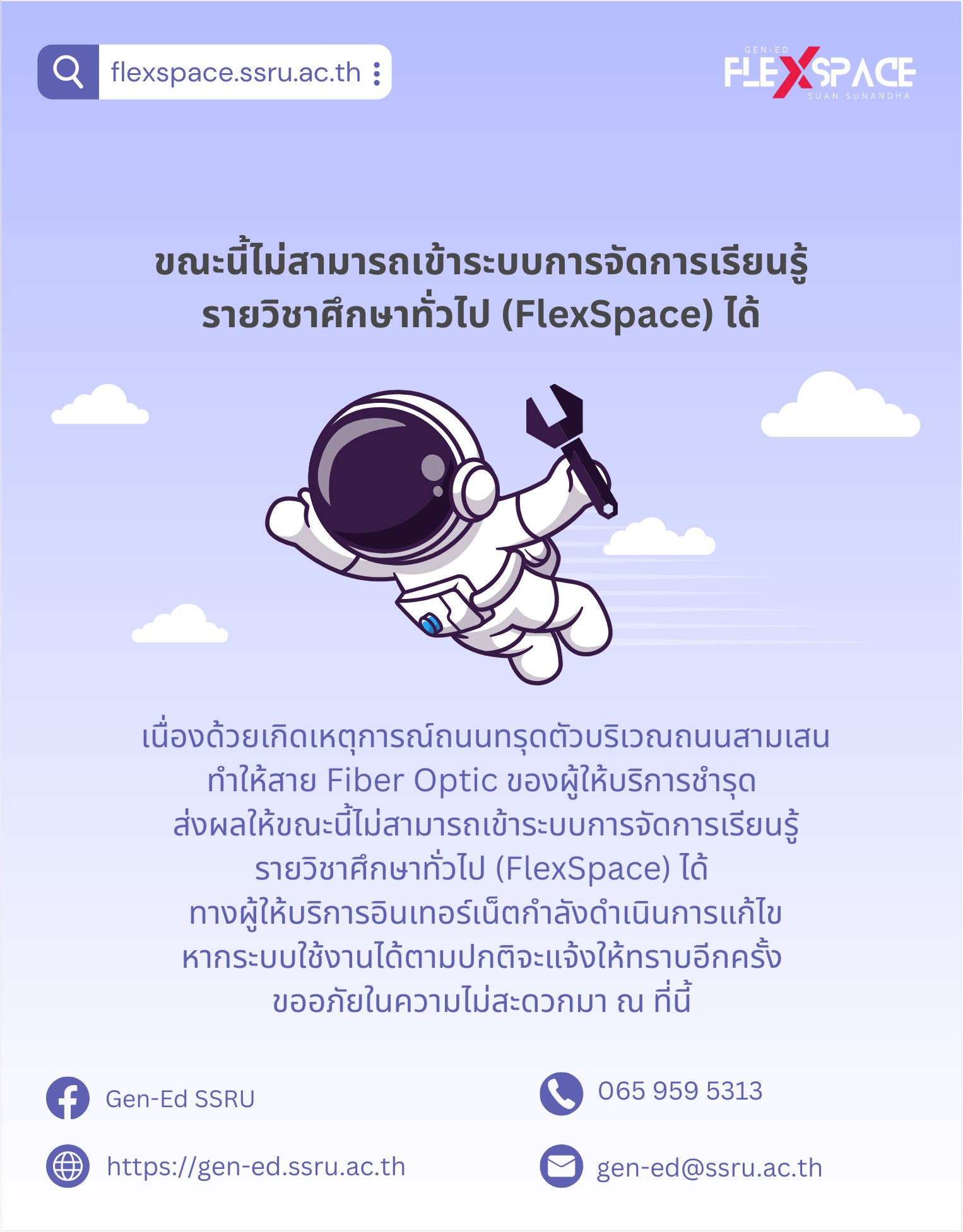 รายวิชาศึกษาทั่วไป (FlexSpace) ให้บริการได้ตามปกติ