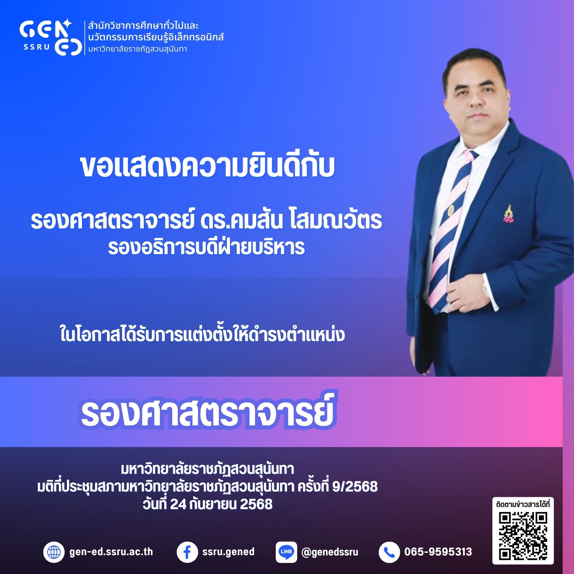 ตามมติเห็นชอบจาก การประชุมสภามหาวิทยาลัยราชภัฏสวนสุนันทา ครั้งที่ 9/2568 วันที่ 24 กันยายน 2568