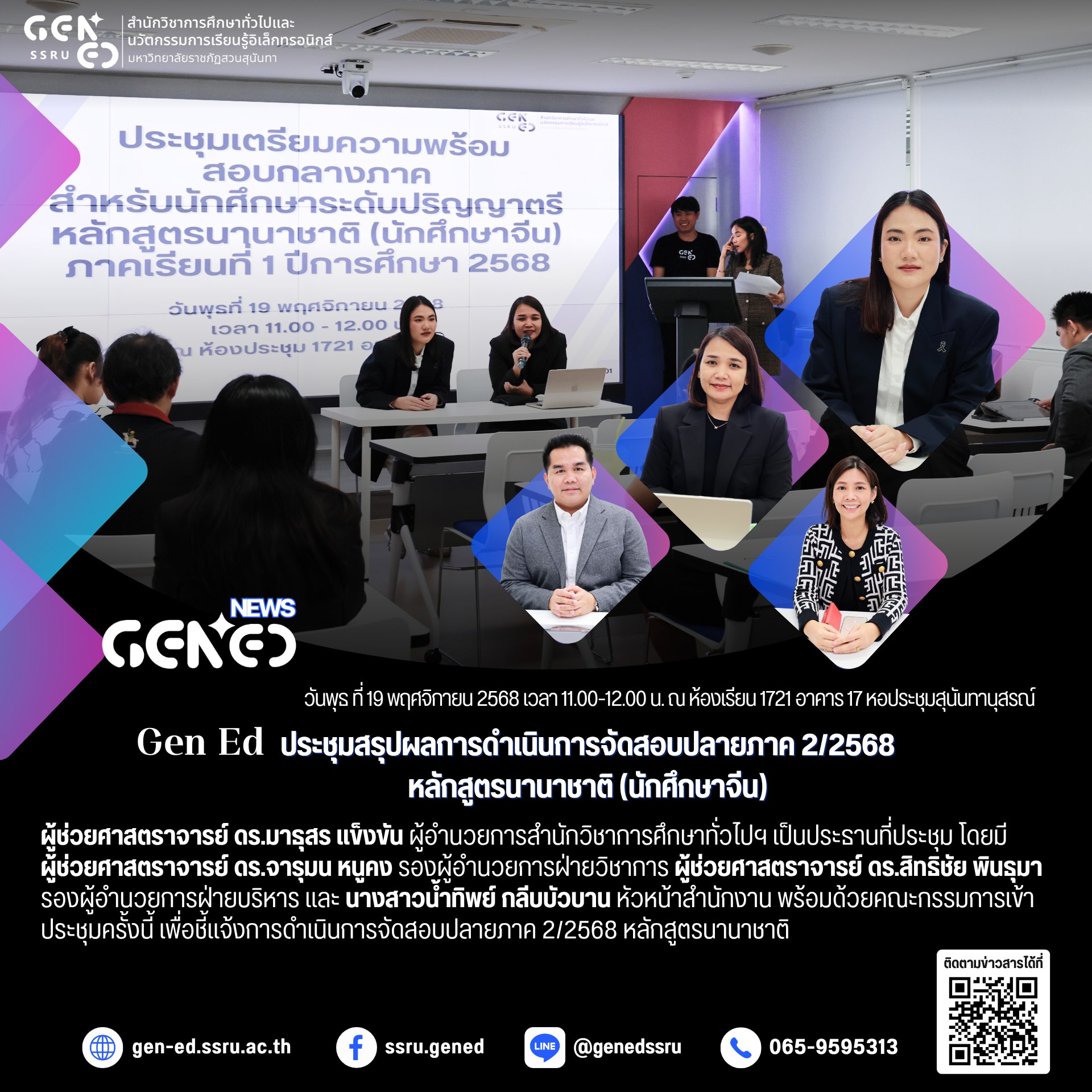 สำนักวิชาการศึกษาทั่วไปและนวัตกรรมการเรียนรู้อิเล็กทรอนิกส์ประชุมสรุปผลการดำเนินการจัดสอบปลายภาค 2/2568 หลักสูตรนานาชาติ (นักศึกษาจีน)