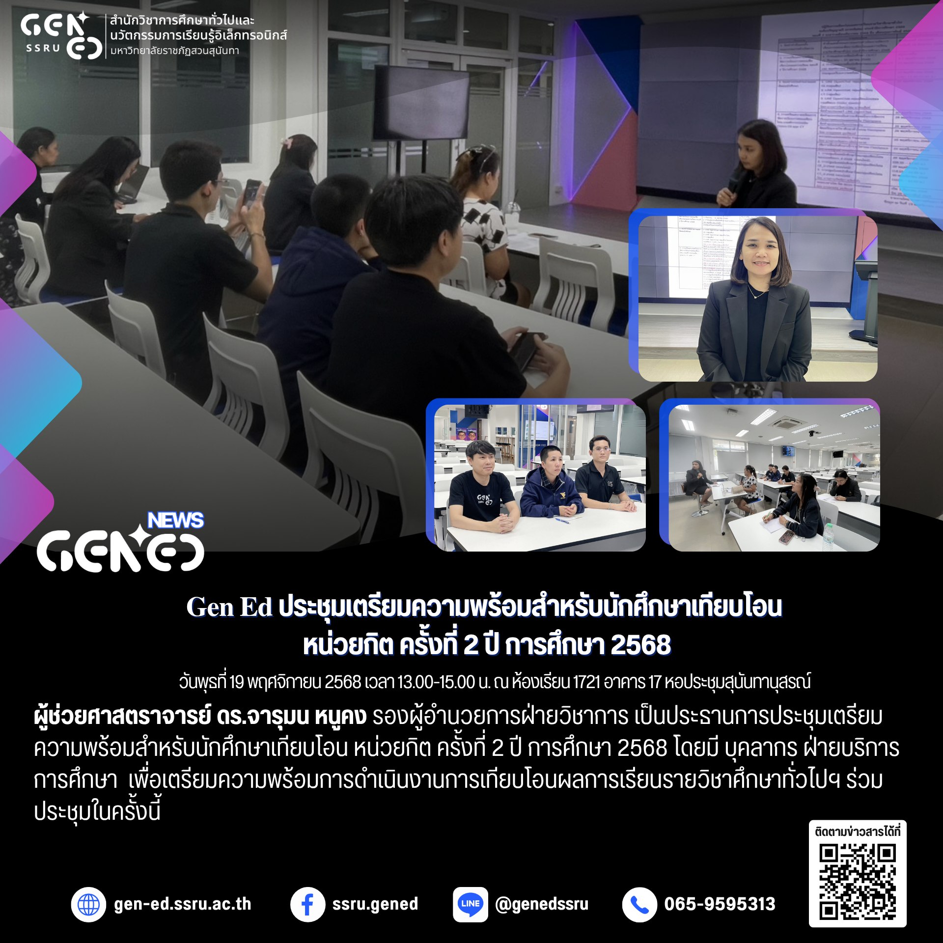 สำนักวิชาการศึกษาทั่วไปและนวัตกรรมการเรียนรู้อิเล็กทรอนิกส์ประชุมเตรียมความพร้อมสำหรับนักศึกษาเทียบโอน หน่วยกิต ครั้งที่ 2 ปี การศึกษา 2568