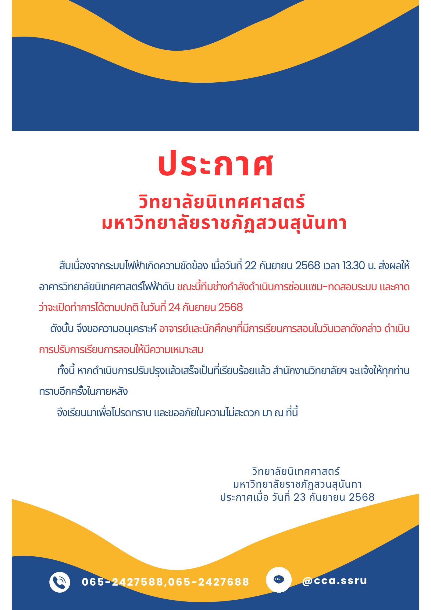 #CCA #SSRU #วิทยาลัยนิเทศศาสตร์ #สวนสุนันทา #มหาวิทยาลัยราชภัฏสวนสุนันทา #มหาวิทยาลัยราชภัฏสวนสุนันทา #วิทยาเขตนครปฐม #มืออาชีพด้านนิเทศศาสตร์ #โรงเรียน #เรียนไหนดี #เรียนนิเทศสวนนัน #สมัครเรียน #สตูดิโอใหม่ #CCAMediaCenter #Dek69 #Portfolio #รับตรง #รับสมัครนักศึกษา #สตูดิโอขนาดใหญ่ #จอมข่าว #สำนักข่าวจอมข่าว #Jomkao #แสดงความยินดี #ผู้ช่วยศาสตราจารย์