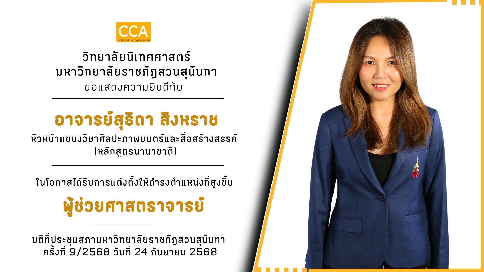วิทยาลัยนิเทศศาสตร์ ขอแสดงความยินดีกับ อาจารย์สุธิดา สิงหราช หัวหน้าแขนงวิชาศิลปะภาพยนตร์และสื่อสร้างสรรค์ (หลักสูตรนานาชาติ)