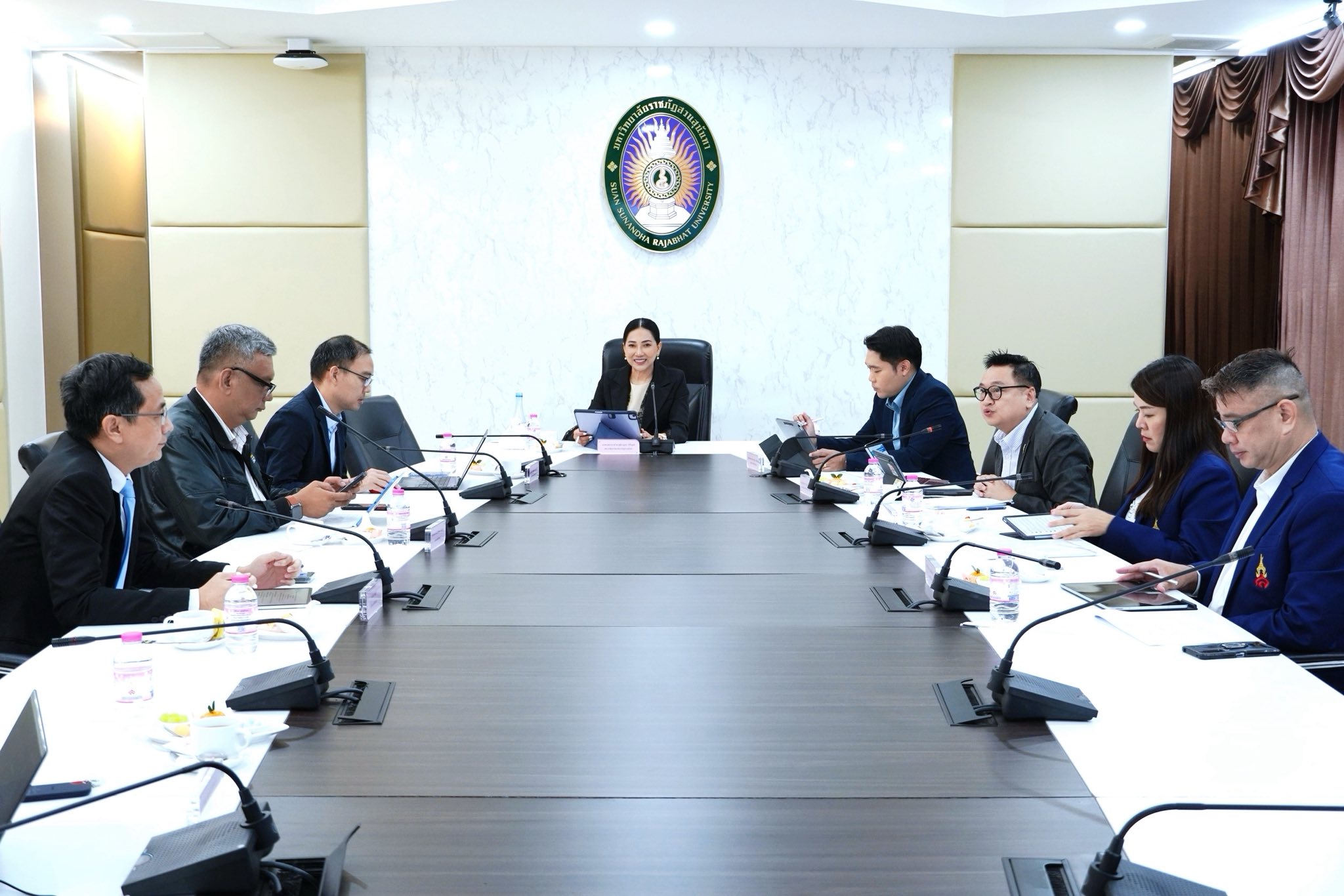 วิทยาลัยการจัดการอุตสาหกรรมบริการ มหาวิทยาลัยราชภัฏสวนสุนันทา นำโดยผู้ช่วยศาสตราจารย์ ดร.วีระ วีระโสภณ คณบดีวิทยาลัยการจัดการอุตสาหกรรมบริการ พร้อมด้วย คณะผู้บริหาร จัดประชุมคณะกรรมการประจำวิทยาลัยการจัดการอุตสาหกรรมบริการ ครั้งที่5/2568 โดยมี รองศาสตราจารย์ ดร.ชุติกาญจน์ ศรีวิบูลย์ อธิการบดีมหาวิทยาลัยราชภัฏสวนสุนันทา เป็นประธานในการประชุมครั้งนี้ ณ ห้องประชุมสำนักงานอธิการบดี ชั้น 5 อาคาร32 มหาวิทยาลัยราชภัฏสวนสุนันทา