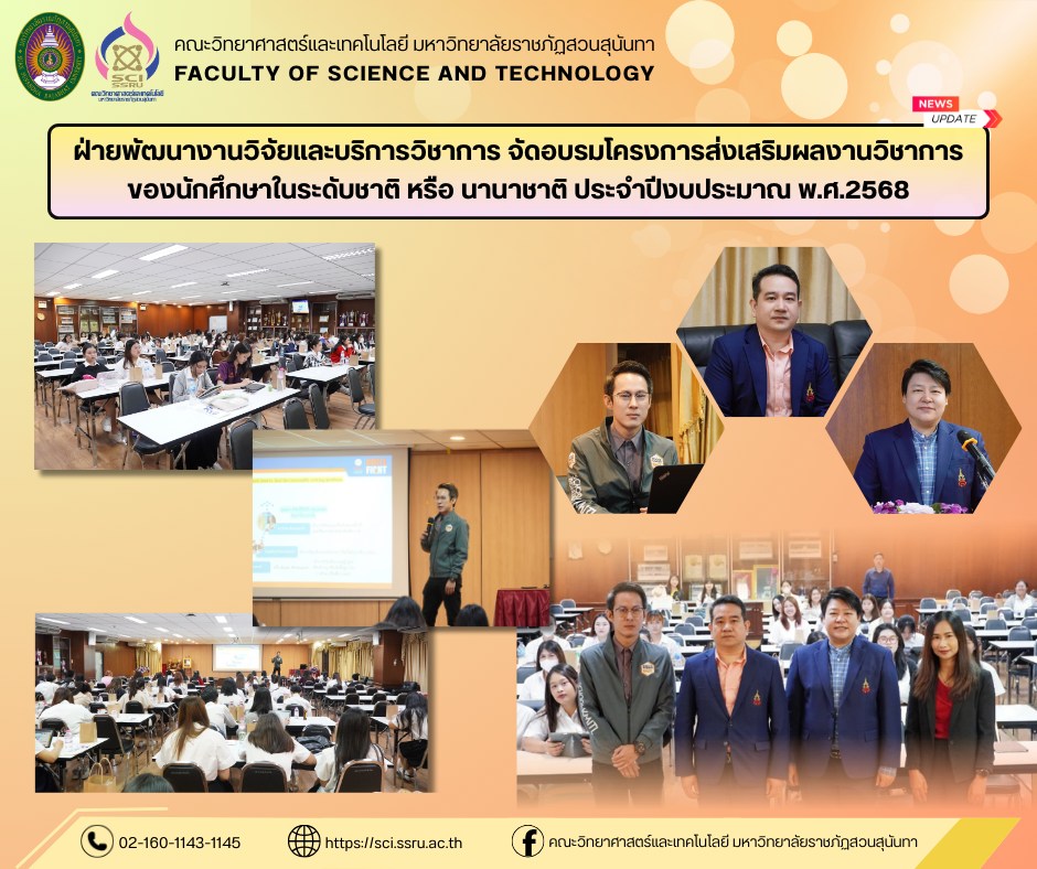 ฝ่ายพัฒนางานวิจัยและบริการวิชาการ จัดอบรมโครงการส่งเสริมผลงานวิชาการของนักศึกษาในระดับชาติ หรือนานาชาติ ประจำปีงบประมาณ พ.ศ. 2568